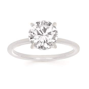 Classic Bridal: Hidden Halo,1/8Ctw. Diamond Mounting With 2 Ct. Lab Grown Round Center Diamond In 14K Gold